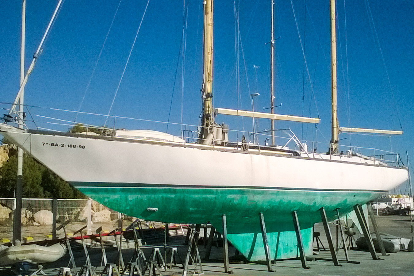 Queche oceánico de 15,25 metros diseñado por el arquitecto naval Dominique Presles. Fue construido en acero (casco y cubierta) y aluminio (superestructura) por ACGB (Ateliers et Chantiers de la Grande Bruyère) en Bavent, Francia y pertrechado a medida de las necesidades de un crucero transmundista y de su primer armador por Astilleros Gallart de Arenys de Mar en 1974. Tras varios periplos por el Atlántico y Caribe, fue restaurado en 1993 y en 2003, y se encuentra ahora en seco, en varadero, en un proceso de reforma mayor no terminada, una PERFECTA OCASION para personalizar el interior. OPORTUNIDAD UNICA para los amantes de veleros con encanto y diseños de prestigio.